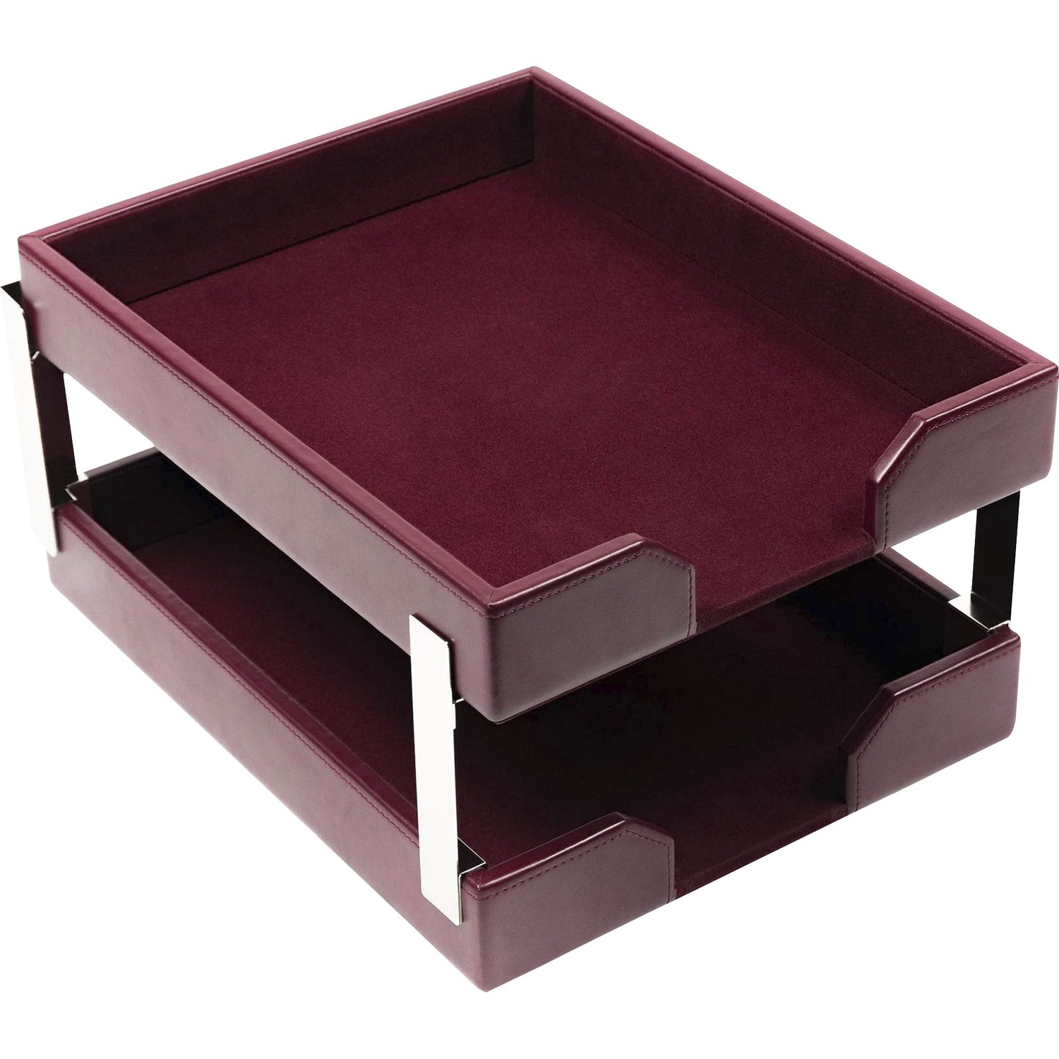 - 2 x Burgundy Bonded Leather Double Letter Trays